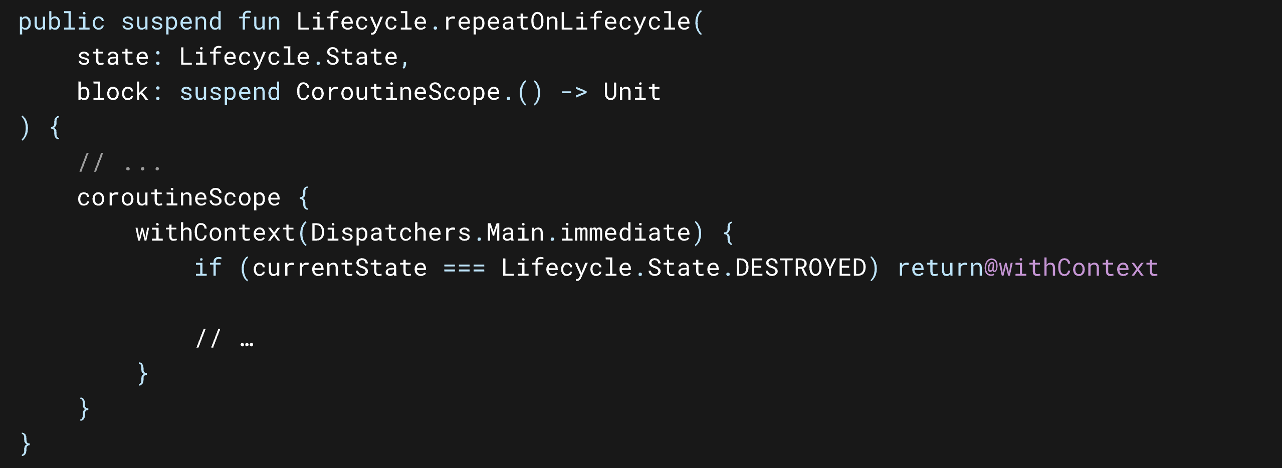 아래 코드는 LifecycleCoroutineScope가 실제로 어떻게 쓰이는지 구현체의 모습이다.