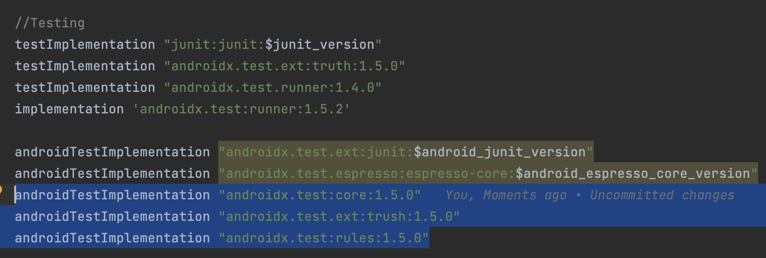 androidTestImplementation "androidx.test.ext:trush:1.5.0"