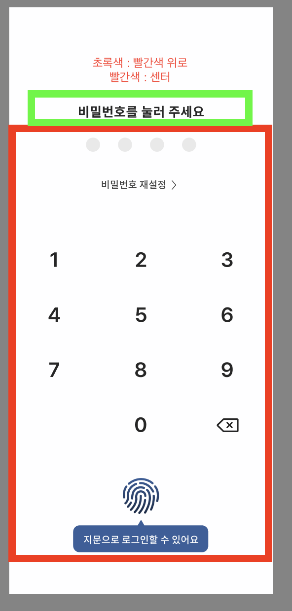 - 중앙 콘텐츠: 키패드, 생체인식 등이 화면 중앙에 항상 고정