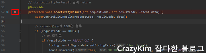 브레이크 포인트가 다이아몬드로 찍힌다면 이 부분은 메소드 브레이크 포인트입니다