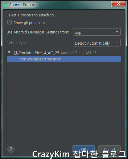 디버깅 모드 전환을 선택하면 아래와 같이 Choose Process 팝업이 나타납니다